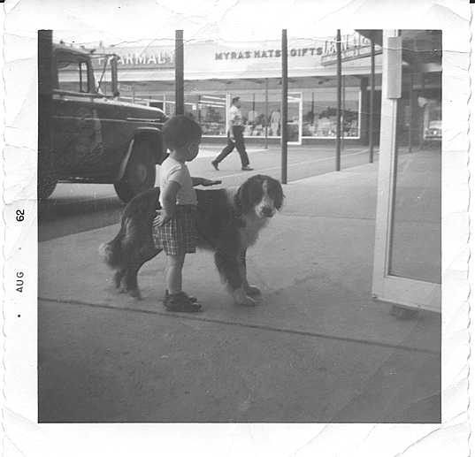 1962, age 2. Petting a BIG dog. "Nice puppy."