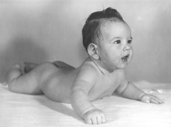 1962, age 2. Petting a BIG dog. "Nice puppy."